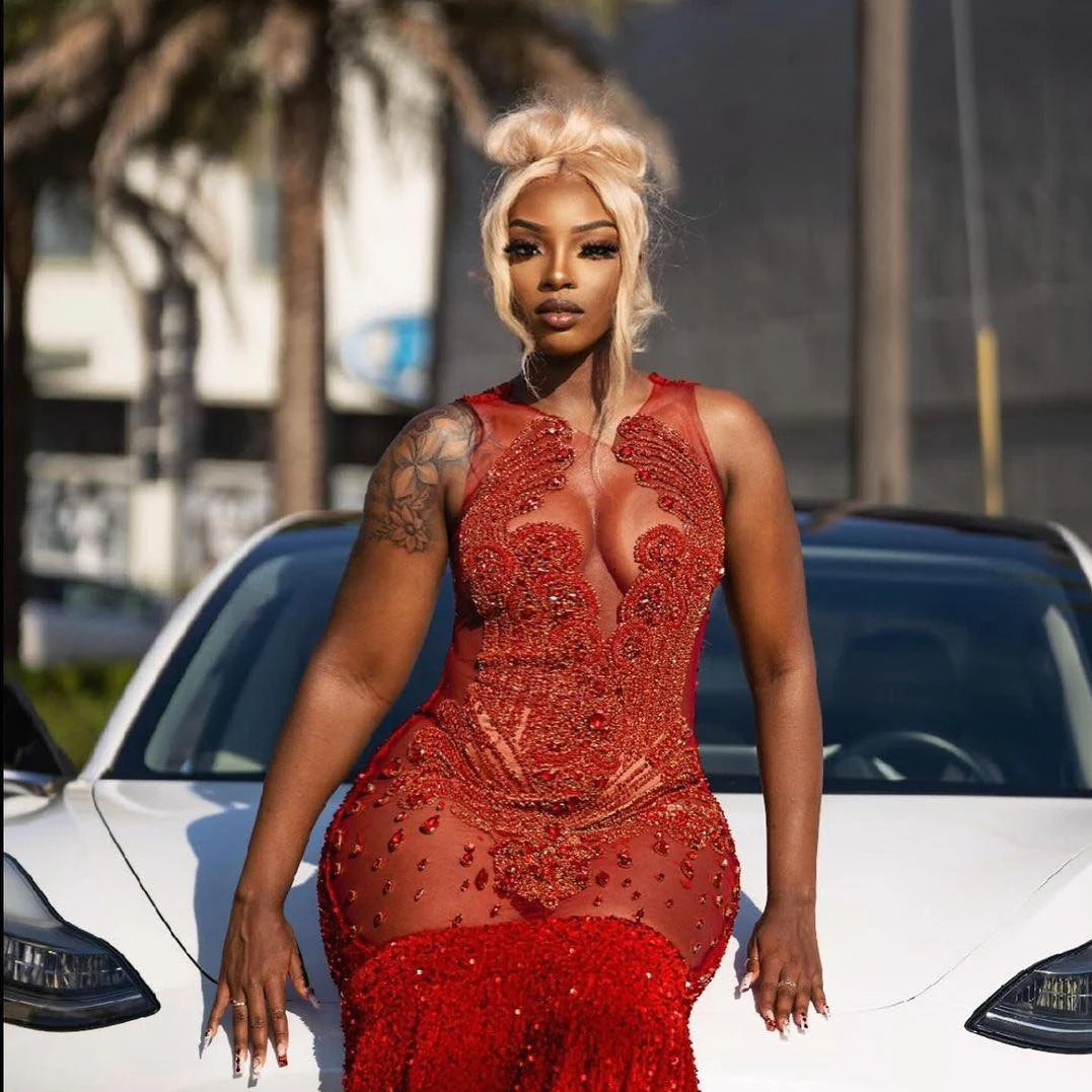 فستان طويل للحفلات الراقصة للفتيات ذوات البشرة السوداء، حورية البحر، مزين بالترتر والخرز والكريستال، فساتين حفلات أعياد الميلاد، فستان سهرة مخصص