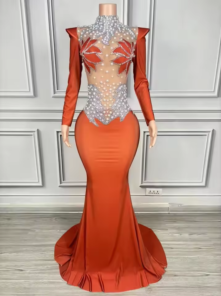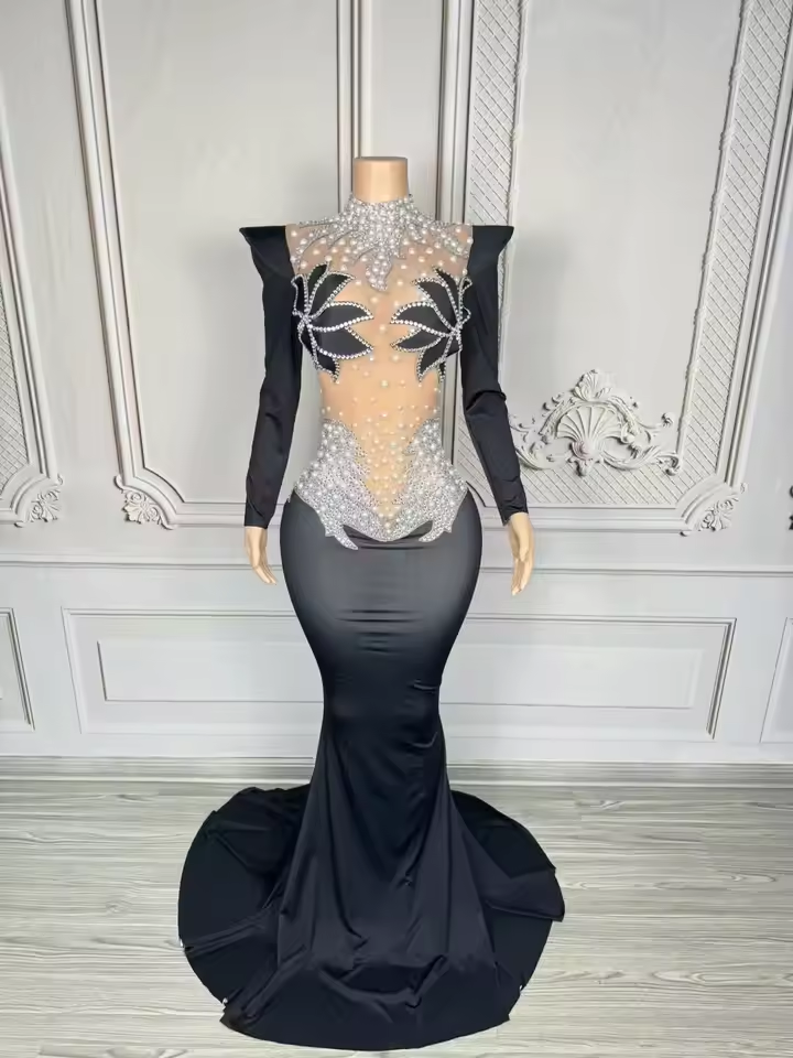 فستان نسائي طويل من اللؤلؤ وأحجار الراين اللامعة، مناسب للمسرح والسهرات والنوادي وحفلات التخرج وحفلات الزفاف وأعياد الميلاد وجلسات التصوير