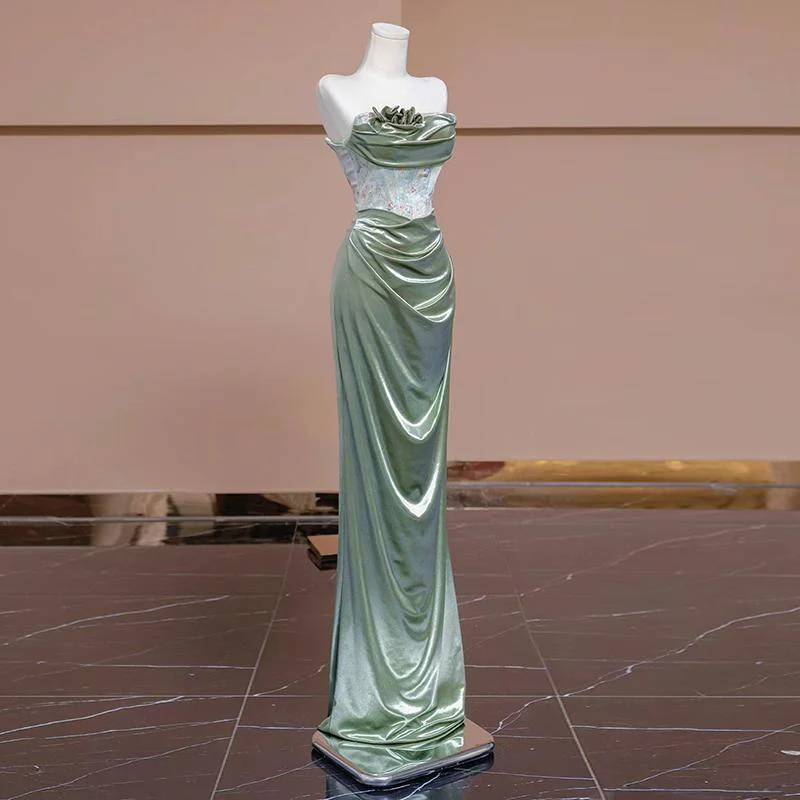 Mermaid Sweetheart Green Long Evening Dress Satin Prom Dresses