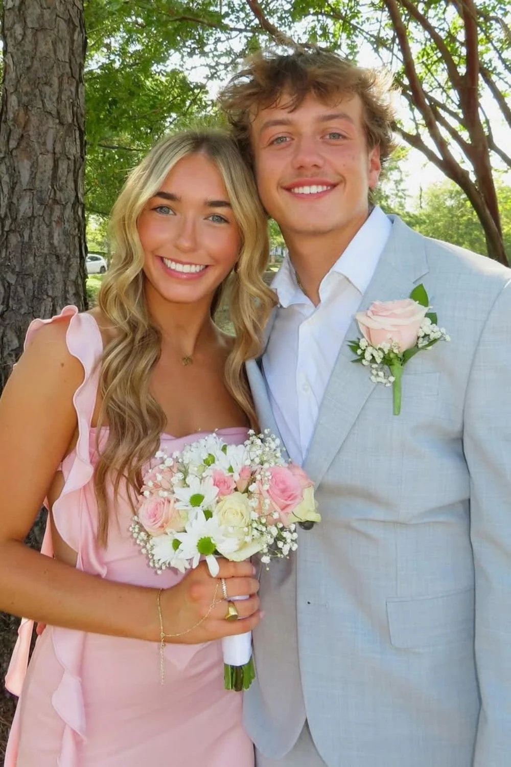 Blush Pink Ruffle Strap Mini Homecoming Dress with Side Cutouts