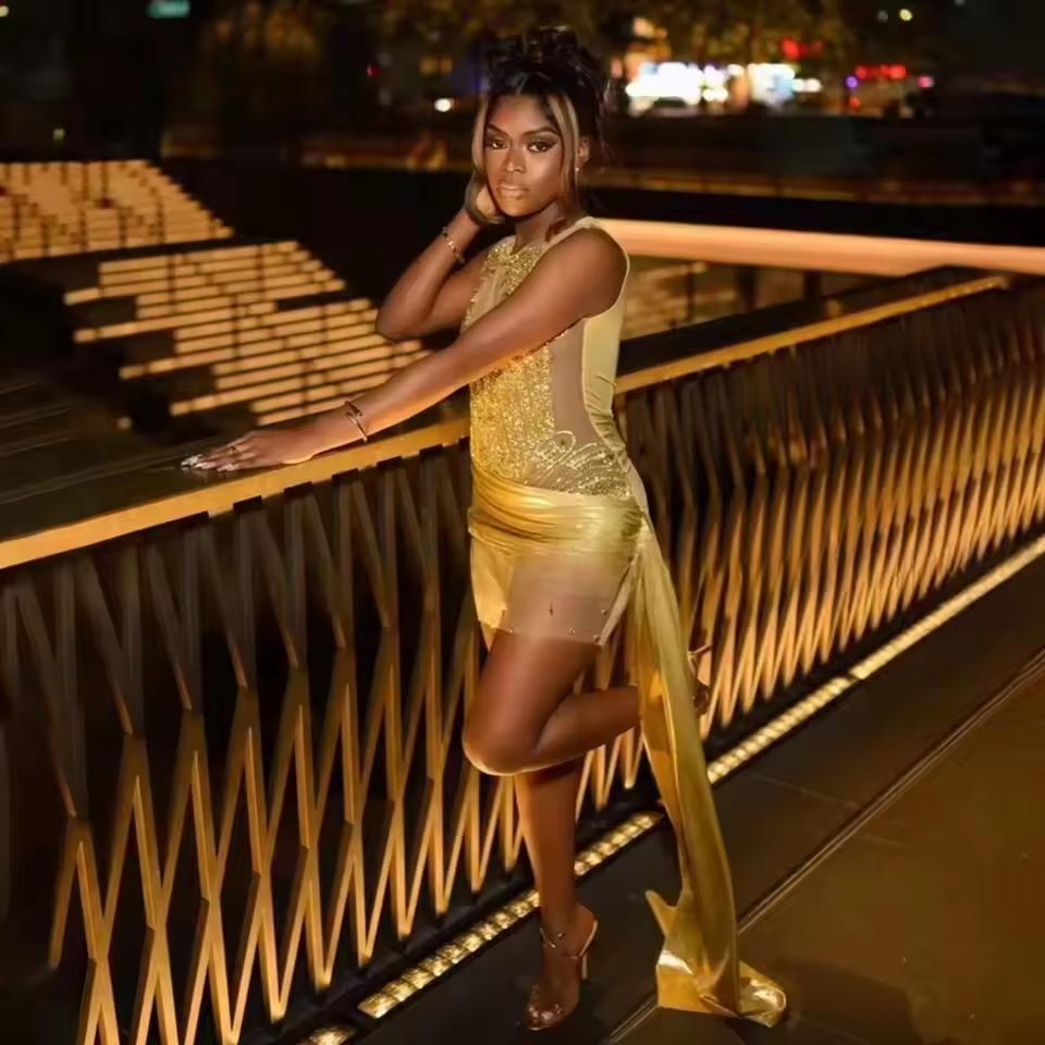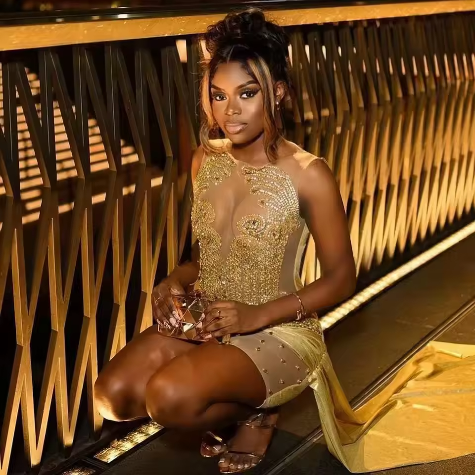 Robe de bal sirène courte à paillettes, personnalisée, fendue sur le côté, à plusieurs niveaux, perles et strass, robe de soirée sans manches, robe d'anniversaire