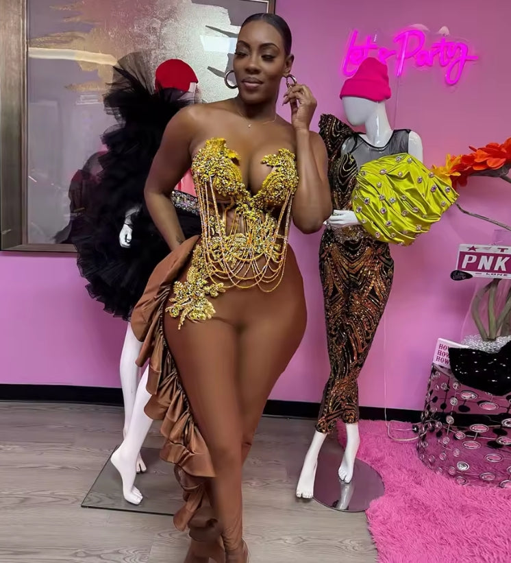Sexy Crystal Gold Birthday Dresses For Women Rhinestone Tassel Mermaid Prom Gowns Sweetheart Cocktail Party Dress Customized