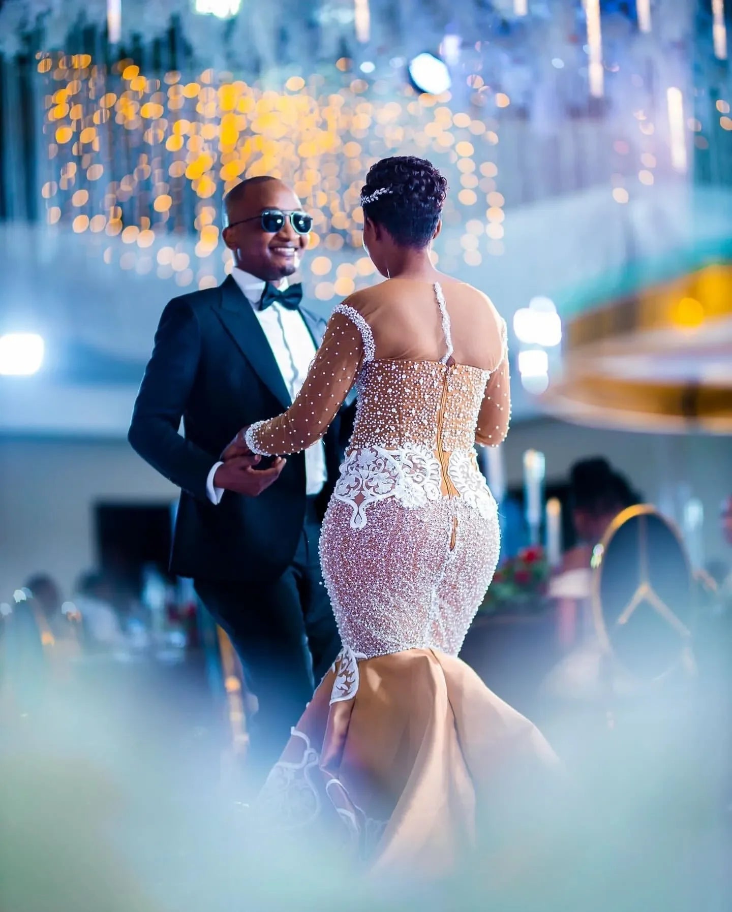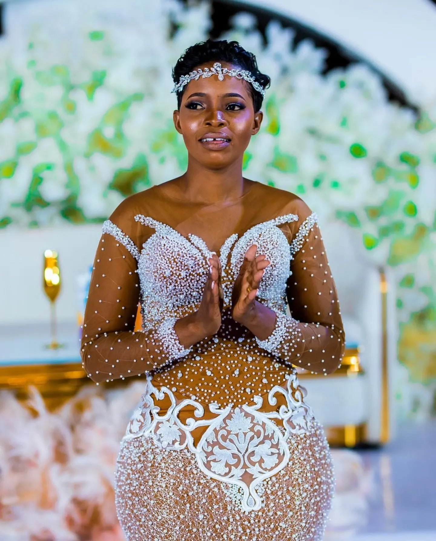 Aso Ebi Plus Size Gold Mermaid Wedding Dresses Lacefull Full Sleeves Lace Crystals Bridal Gowns Dress Vestidos De Novia