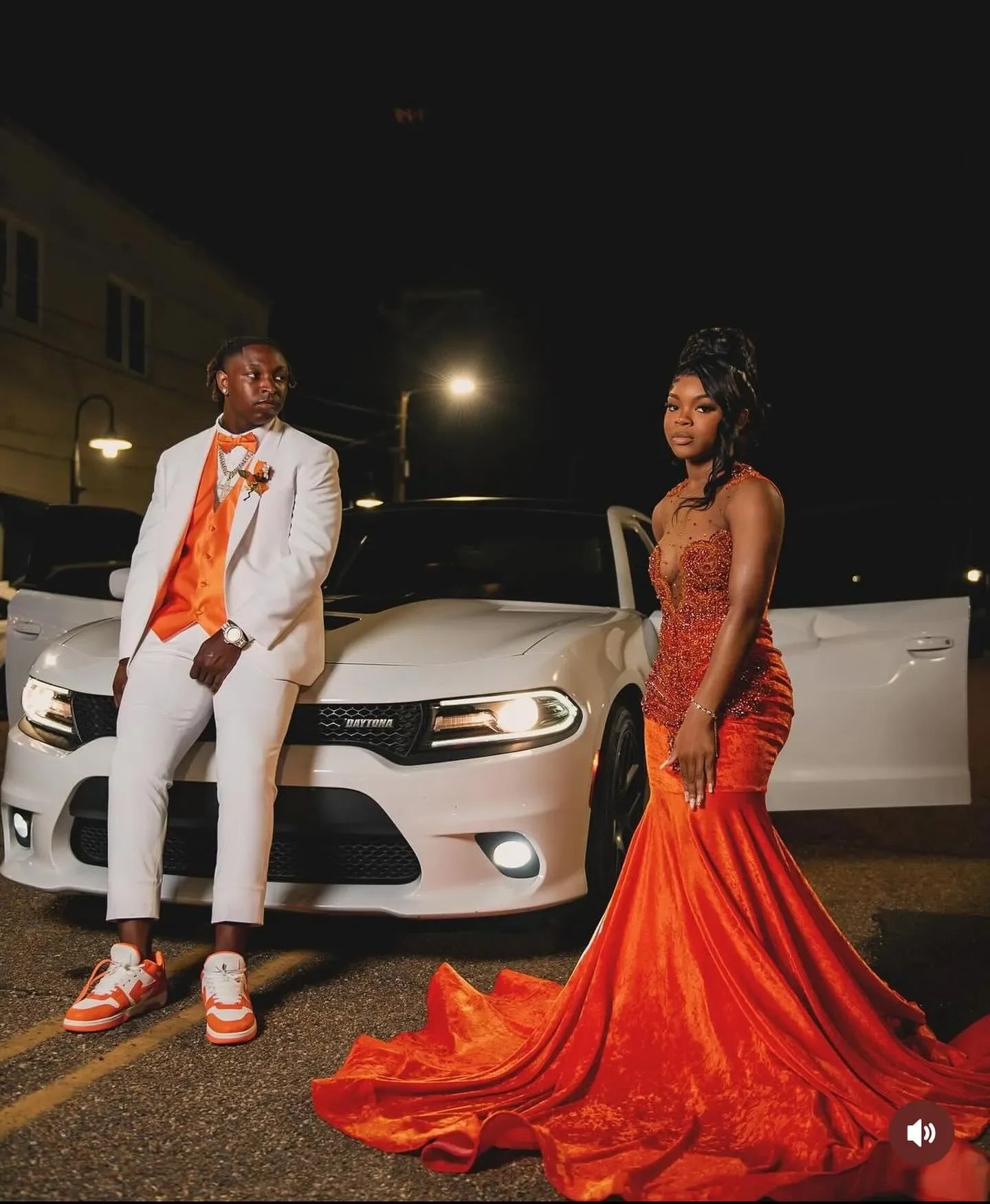 Orange Sparkly Long Evening Birthday Party Dresses for Black Girl Diamond Mermaid Prom Ceremony Formal Dress