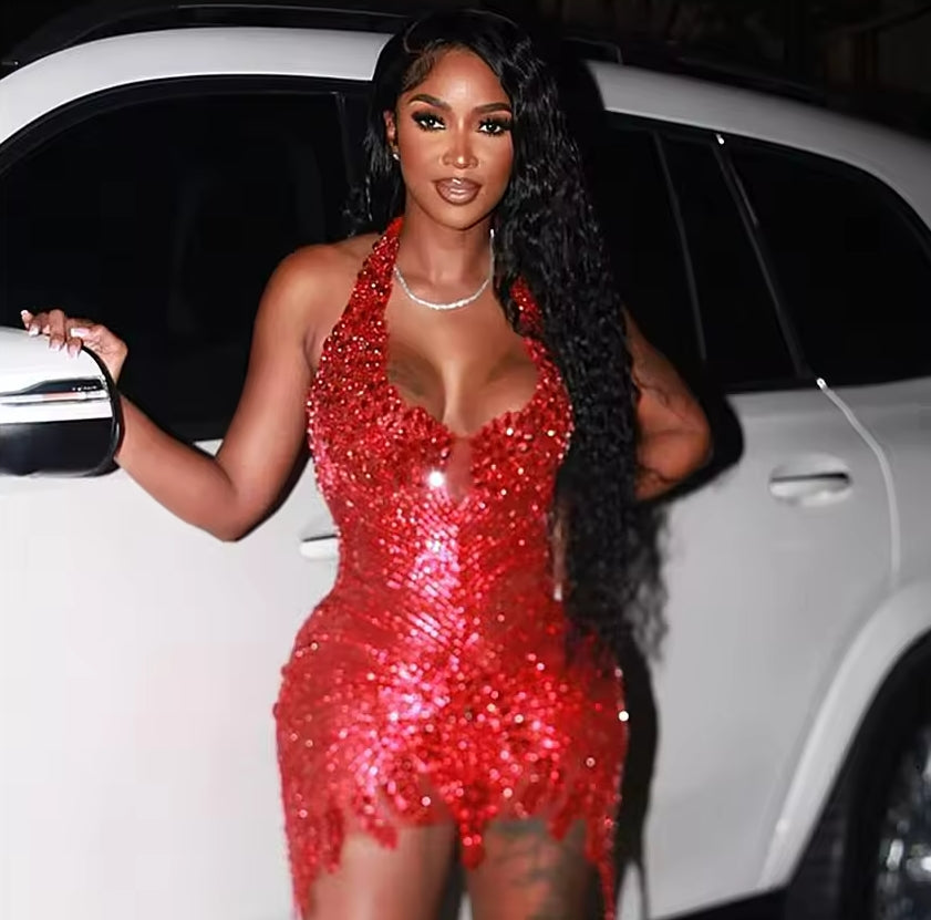 Red Halter Beaded Rhinestones Prom Dresses Black Girls Crystal Sheer Mesh African Mini Cocktail Dress Customized