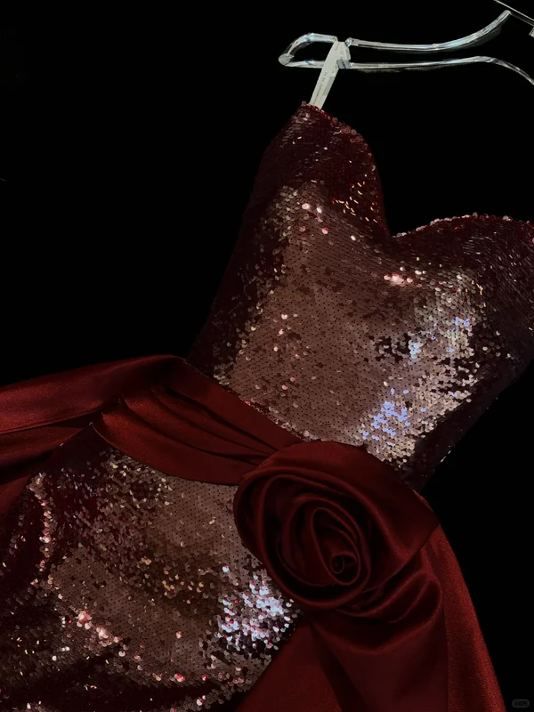 Sexy Mermaid Sweetheart Neck Dark Burgundy Sequin Satin Long Prom Dress Evening Dress