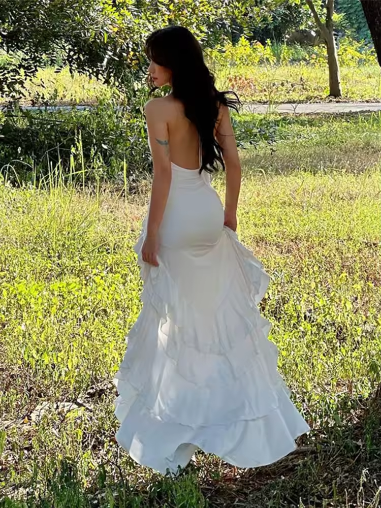 Sexy Mesh Bodycon Women Dress See Through Lace Slim Bandage Long Dresses Femme Beach Holiday Backless Elegant Dress Woman
