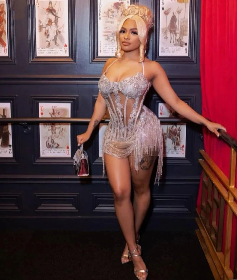 Sexy Silver Beaded Sheath Prom Dresses For Black Girls Spaghetti Strap Knee Length Mini Cocktail Party Gowns Vestidos De Novia