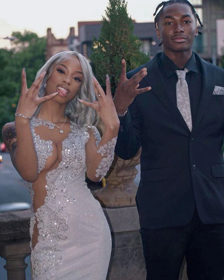 Shining Silver Mermaid Long Sleeves Prom Dress