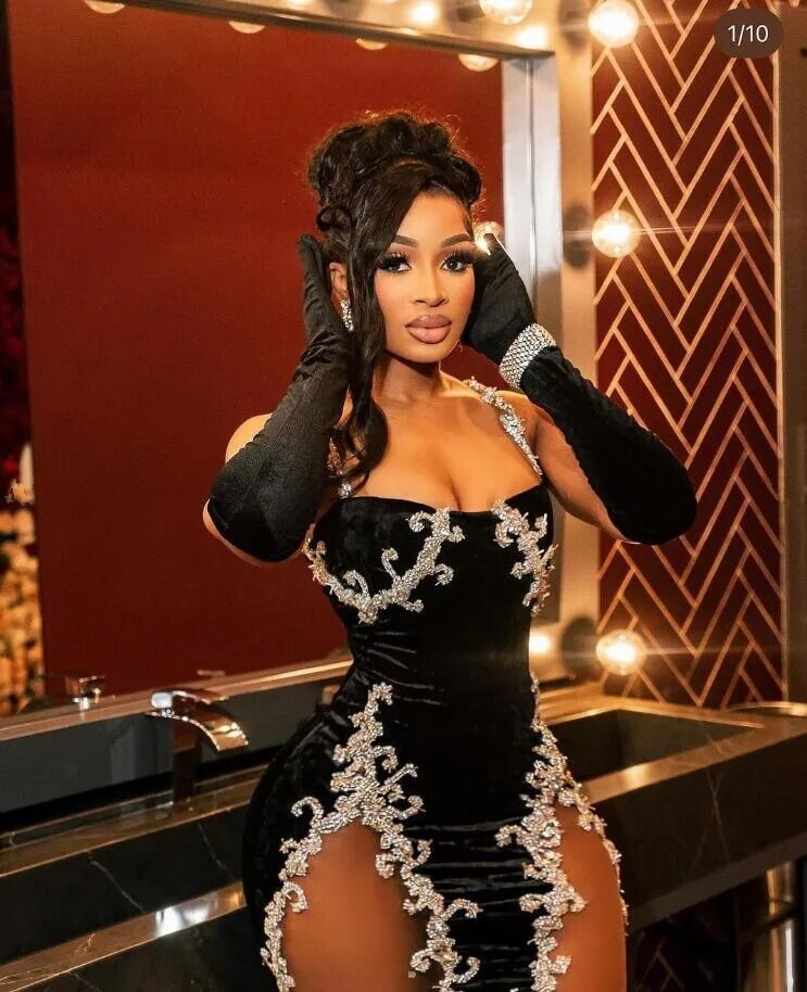 Sparkly Diamond Mini Evening Cocktail Dress for Women Sheer Mesh Crystal Beaded Black Girl Birthday Party Queen Gown velvet
